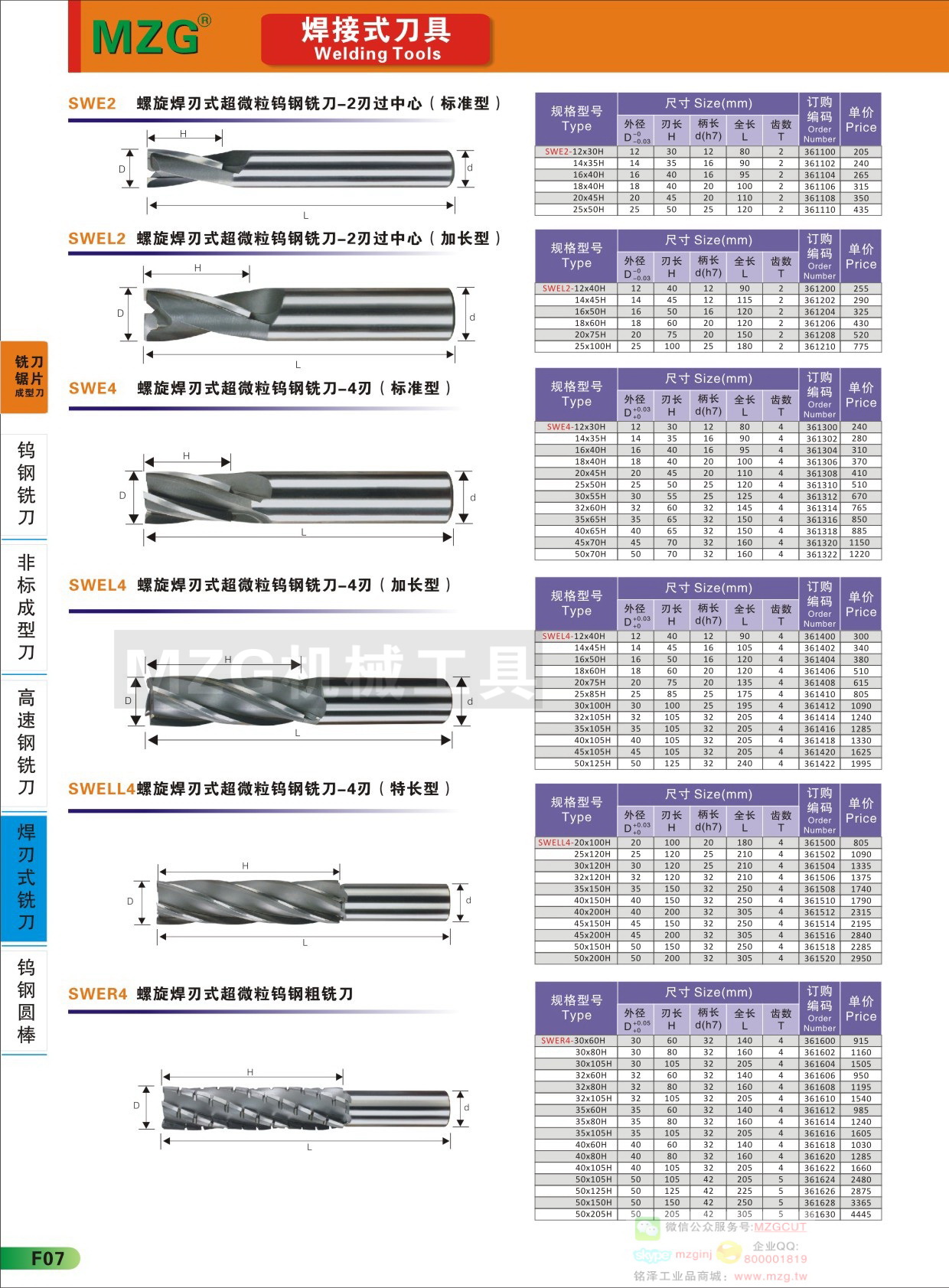 MZG品牌焊刃式銑削刀具產(chǎn)品技術參數(shù)配件組成信息