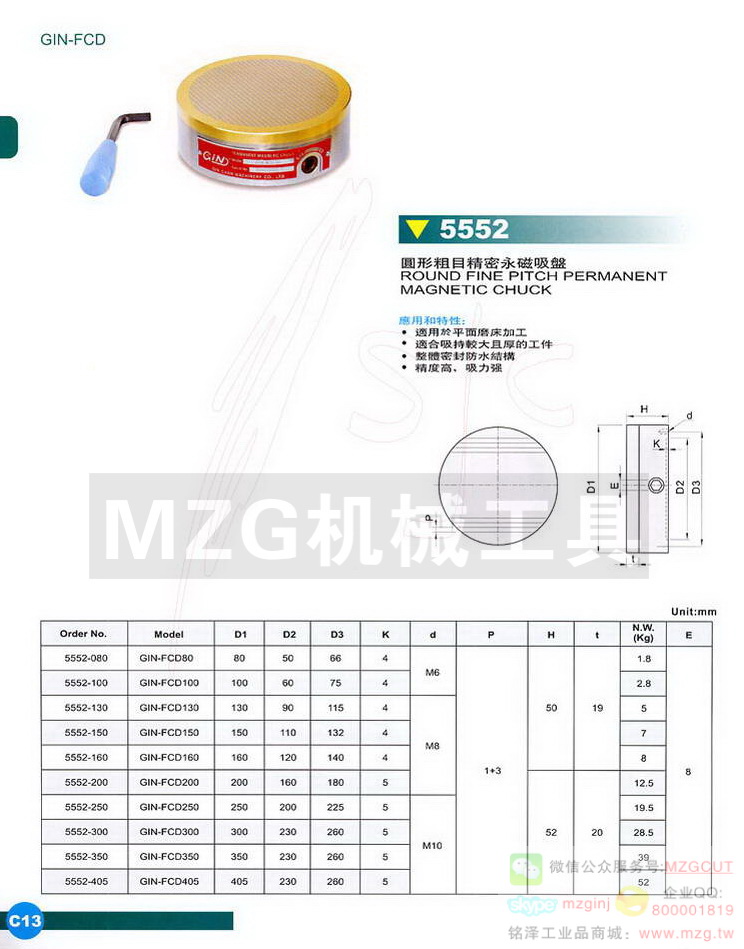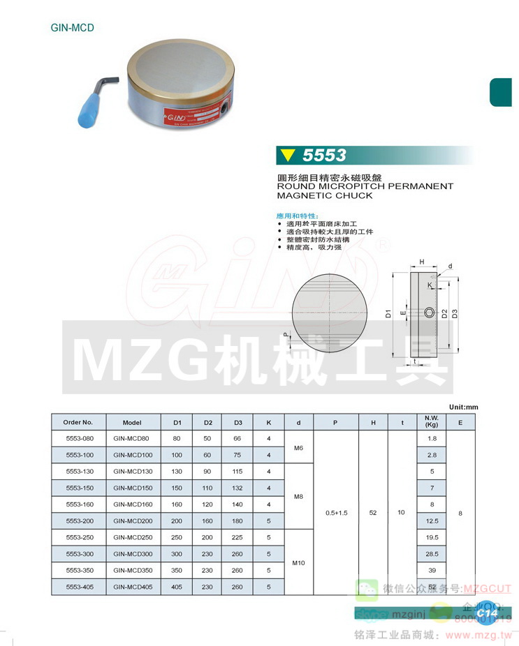 MZG機械工具圓形永磁吸盤產(chǎn)品詳細信息