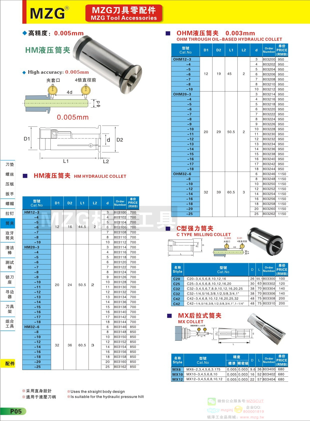 MZG品牌數(shù)控刀柄產(chǎn)品技術(shù)參數(shù)配件組成信息