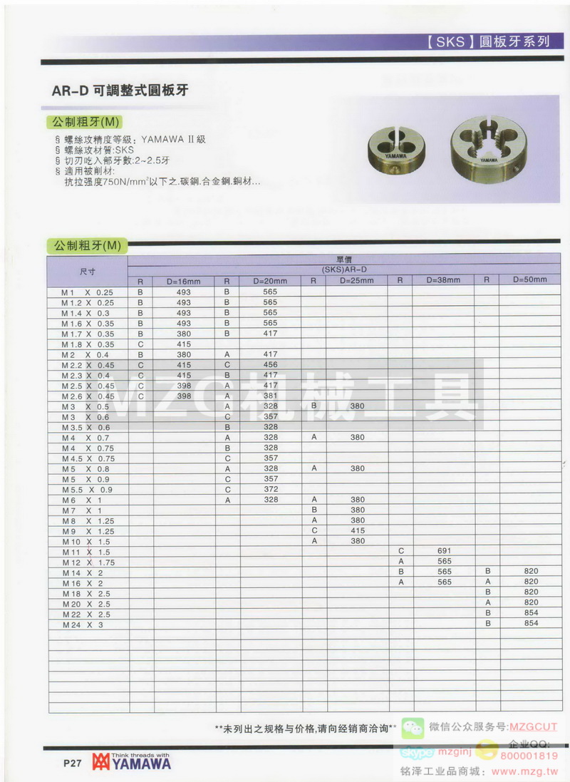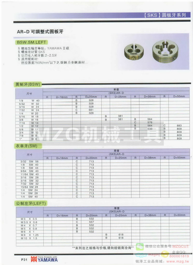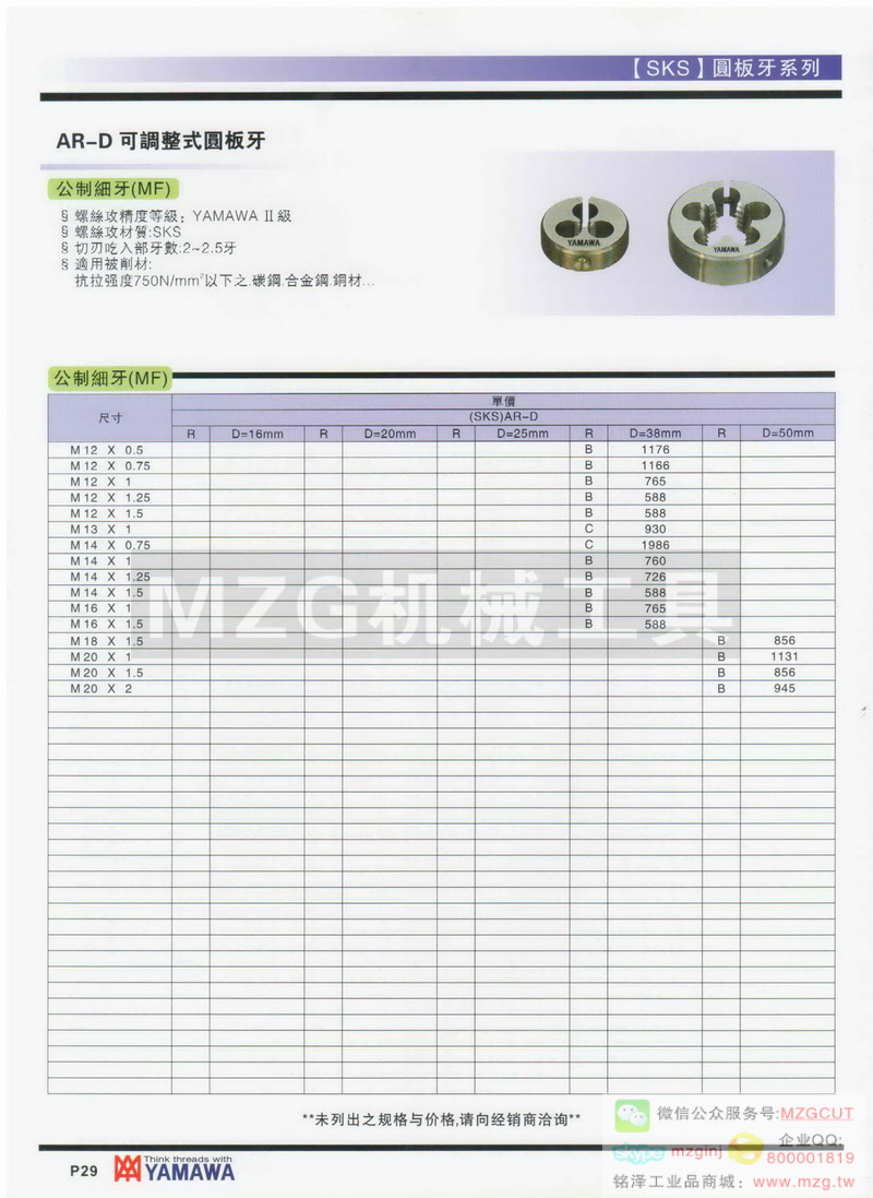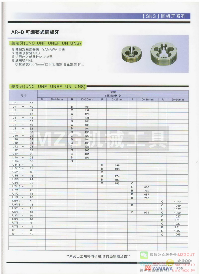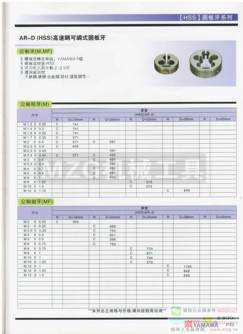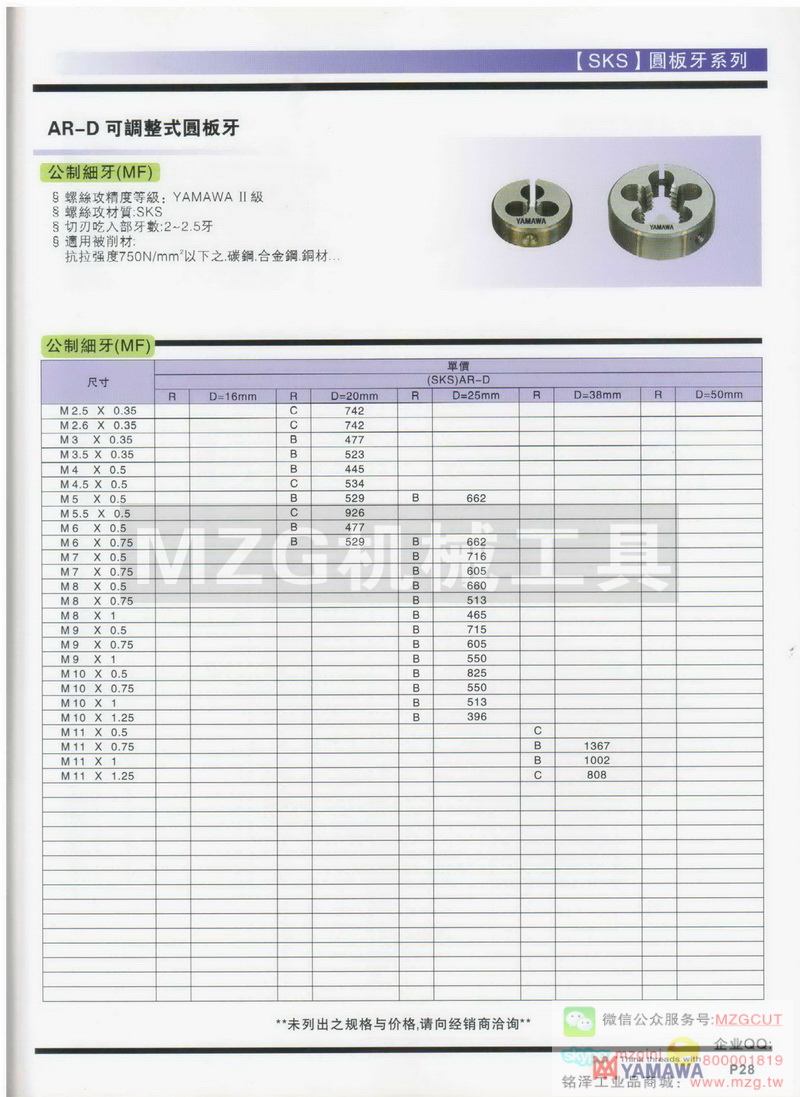 YAMAWA可調(diào)式圓板牙產(chǎn)品詳細(xì)信息