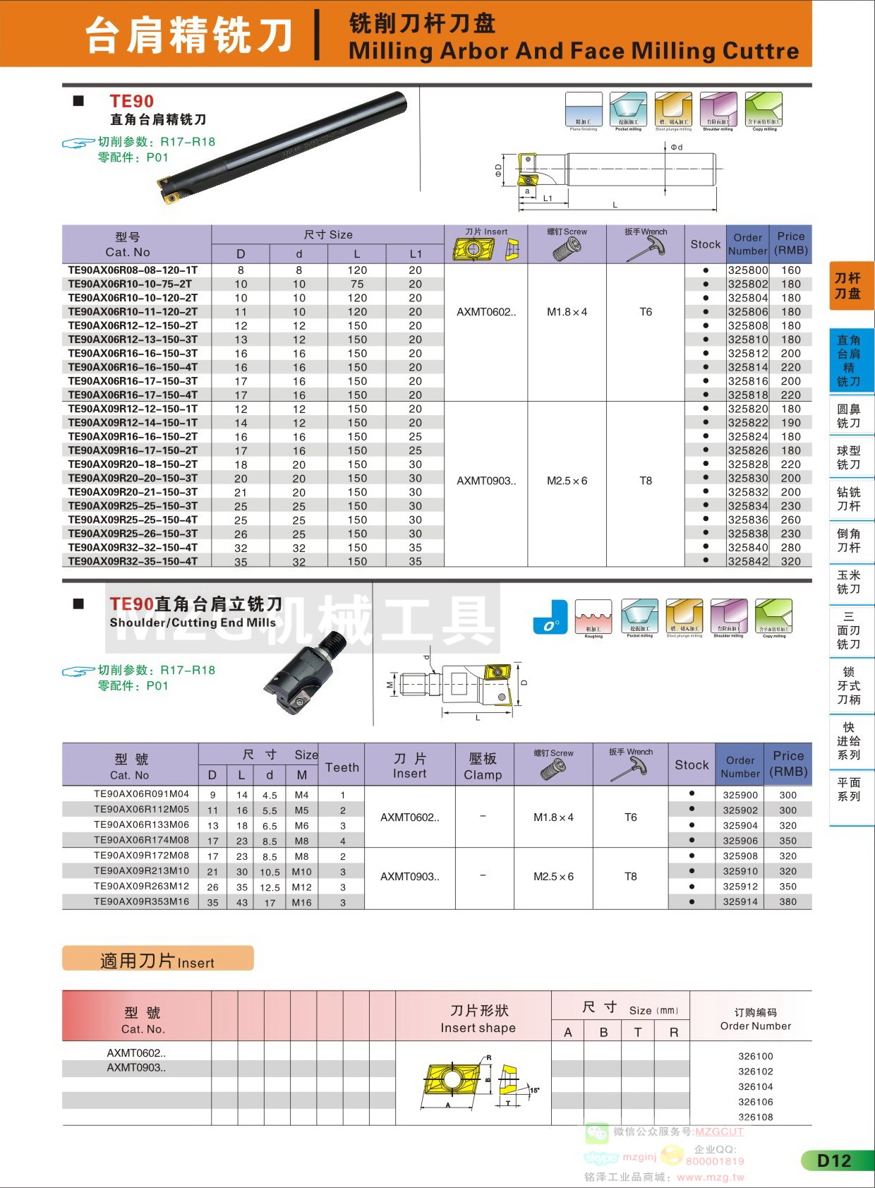 MZG品牌機(jī)夾式直角臺(tái)肩立銑刀產(chǎn)品技術(shù)參數(shù)配件組成信息