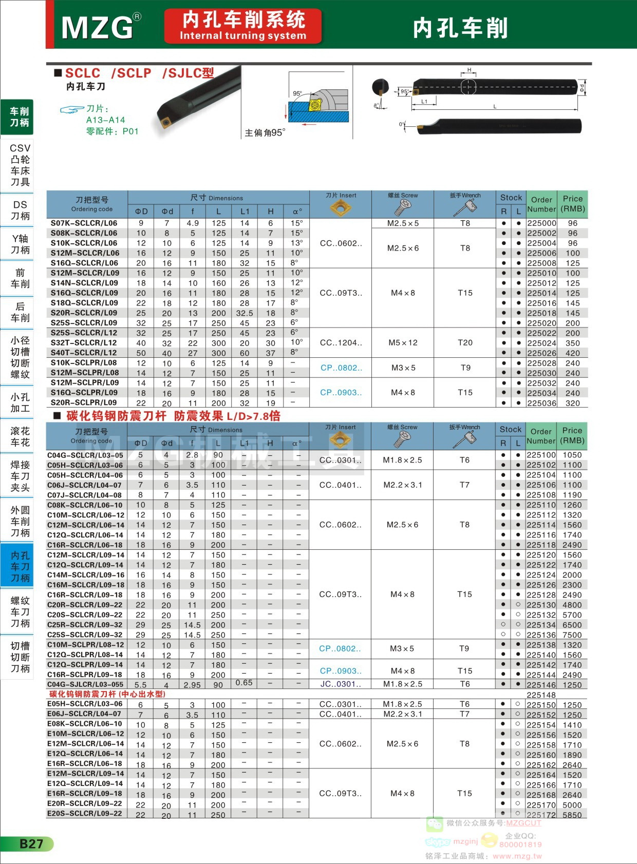 MZG數(shù)控刀具SCLC-95度機(jī)夾式內(nèi)孔車削刀桿產(chǎn)品技術(shù)參數(shù)配件組成信息