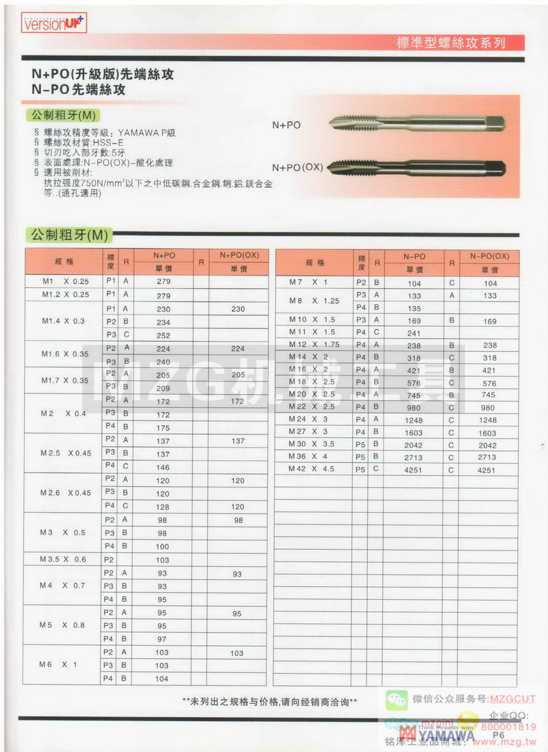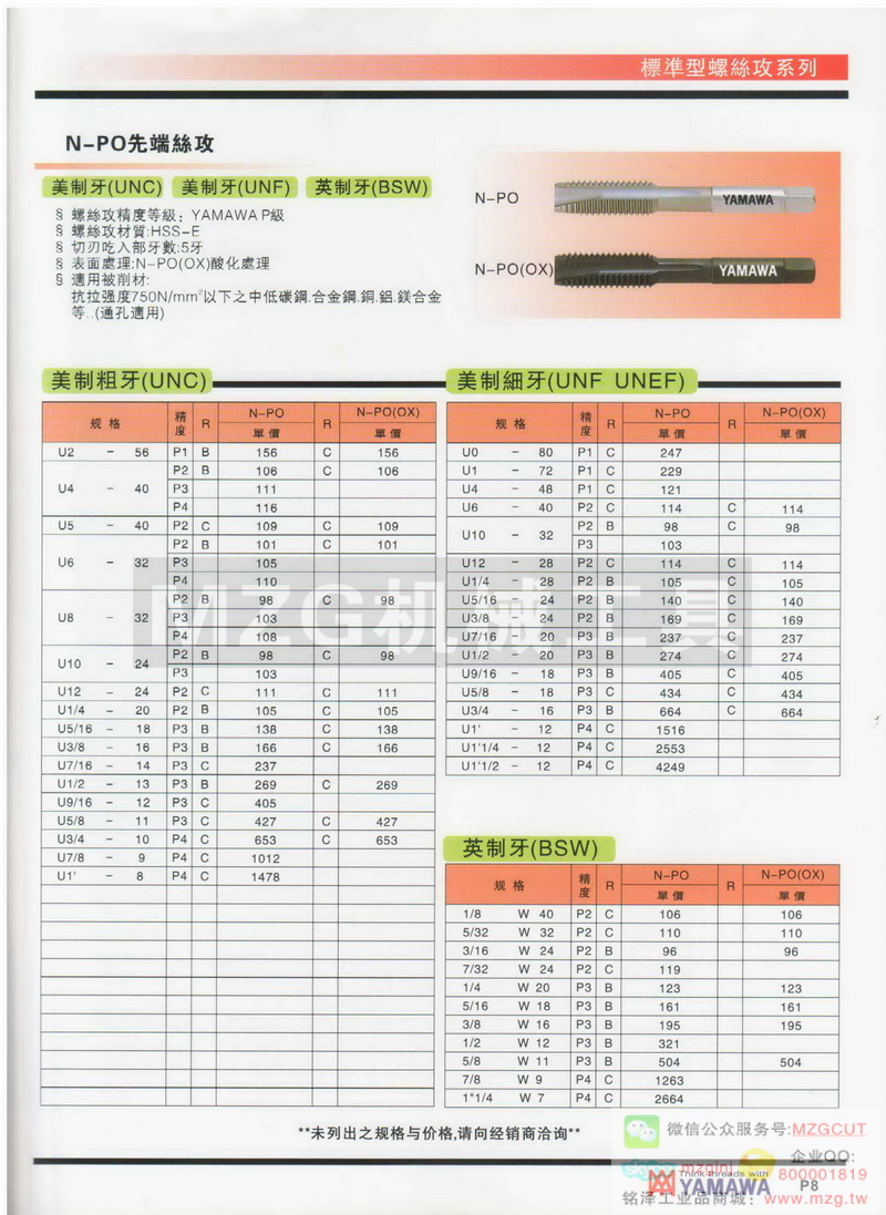 YAMAWA先端直槽絲攻產(chǎn)品技術(shù)參數(shù)配件組成信息