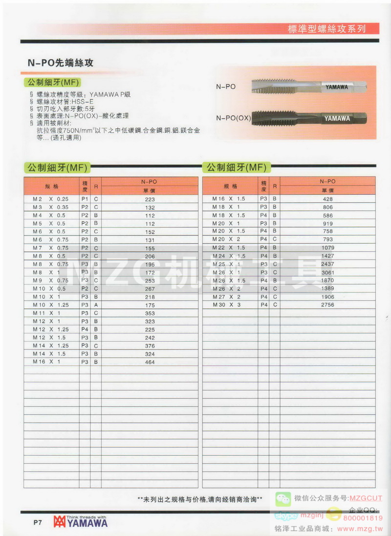 YAMAWA先端直槽絲攻產(chǎn)品詳細信息
