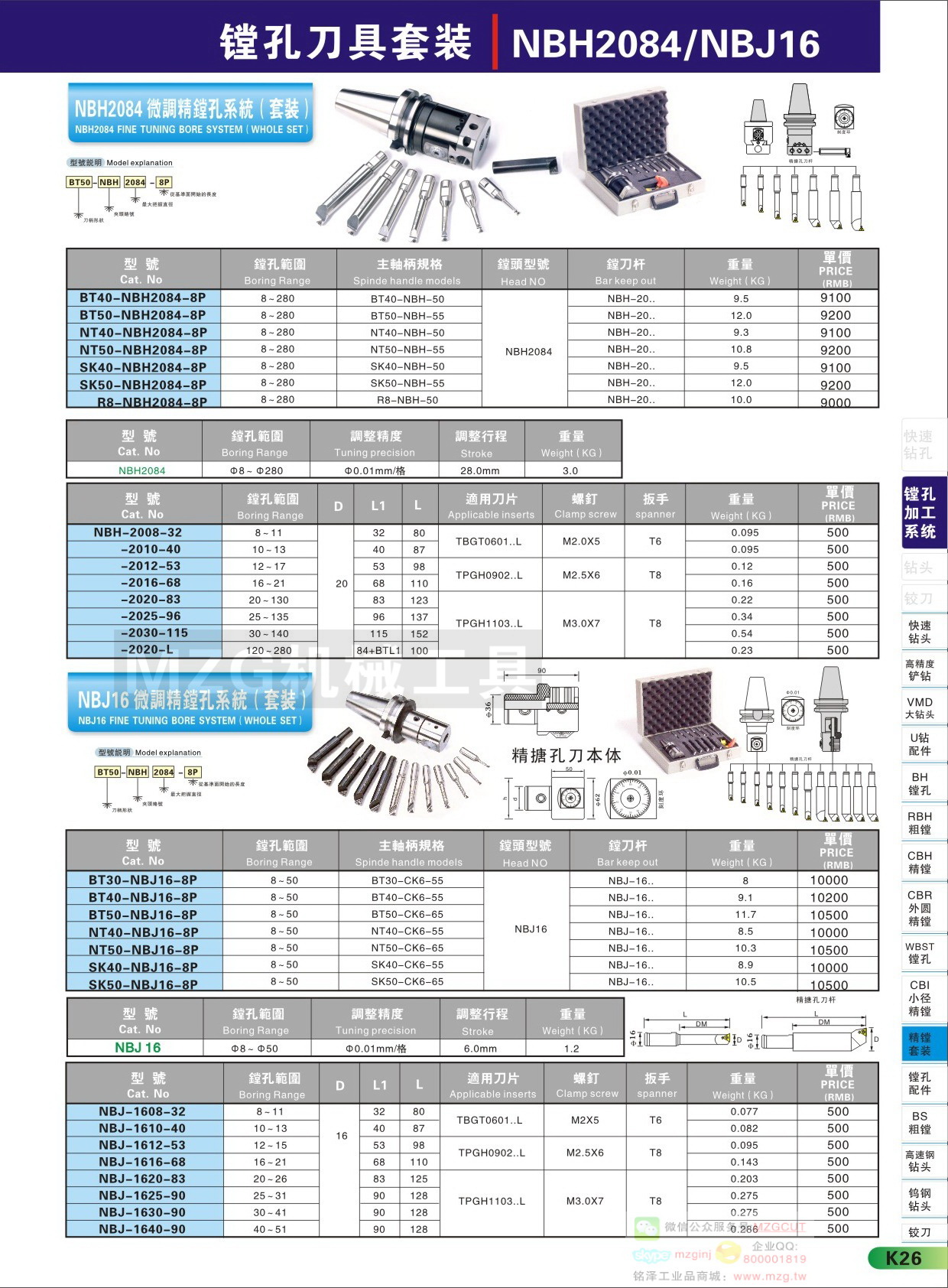 MZG品牌搪孔系統(tǒng)產(chǎn)品技術(shù)參數(shù)配件組成信息