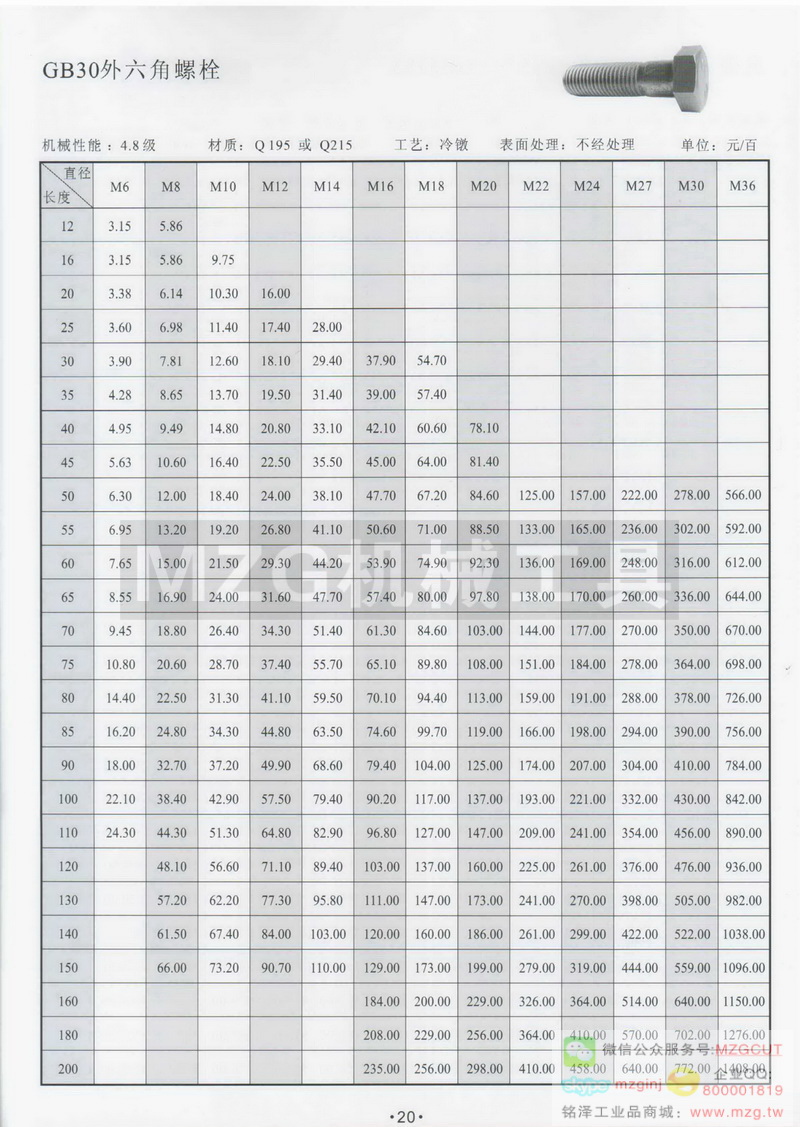 GB30外六角螺栓產(chǎn)品技術(shù)參數(shù)配件組成信息