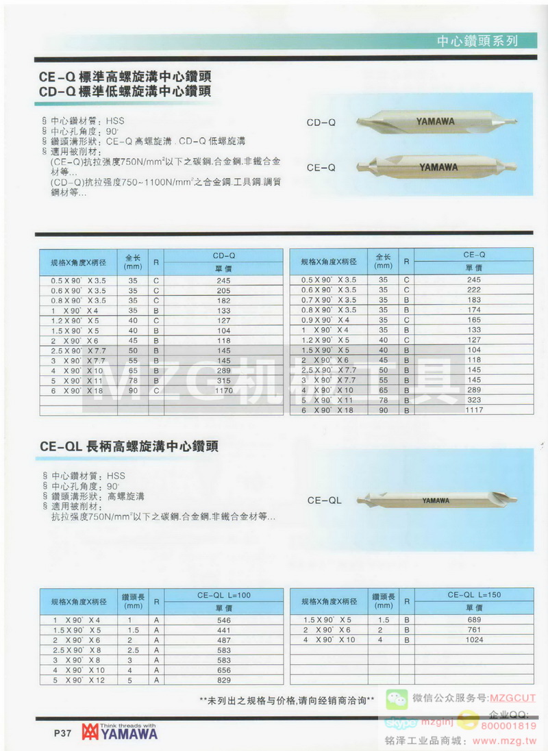 YAMAWA先端鉆頭,中心鉆產(chǎn)品技術(shù)參數(shù)配件組成信息
