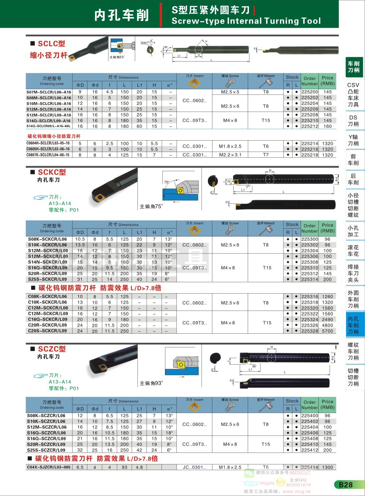 MZG數(shù)控刀具SCLC-95度機(jī)夾式內(nèi)孔車削刀桿產(chǎn)品技術(shù)參數(shù)配件組成信息