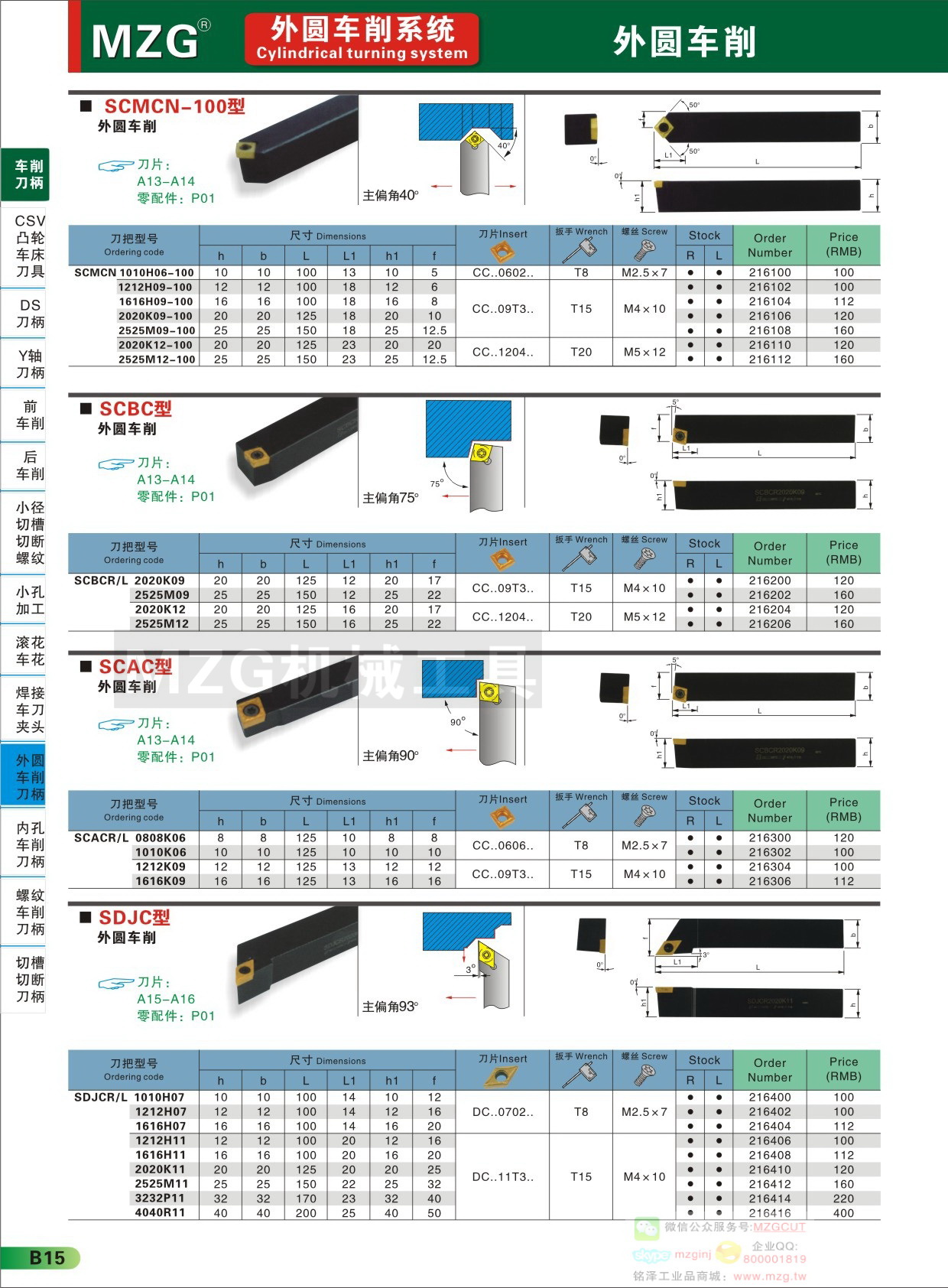 MZG數(shù)控刀具SCBC外圓機夾式車削刀桿產(chǎn)品技術(shù)參數(shù)配件組成信息
