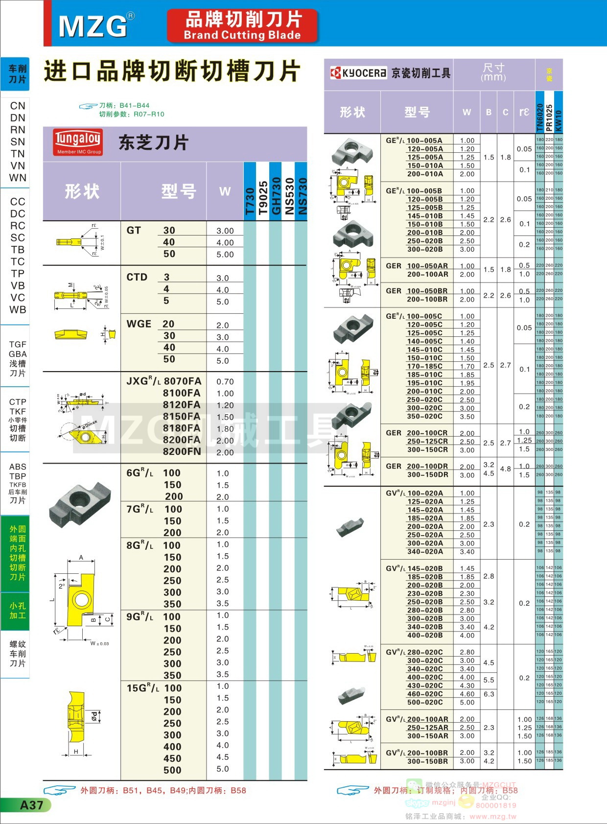MZG數(shù)控刀具GR內(nèi)孔切槽刀片刀桿產(chǎn)品技術(shù)參數(shù)配件組成信息