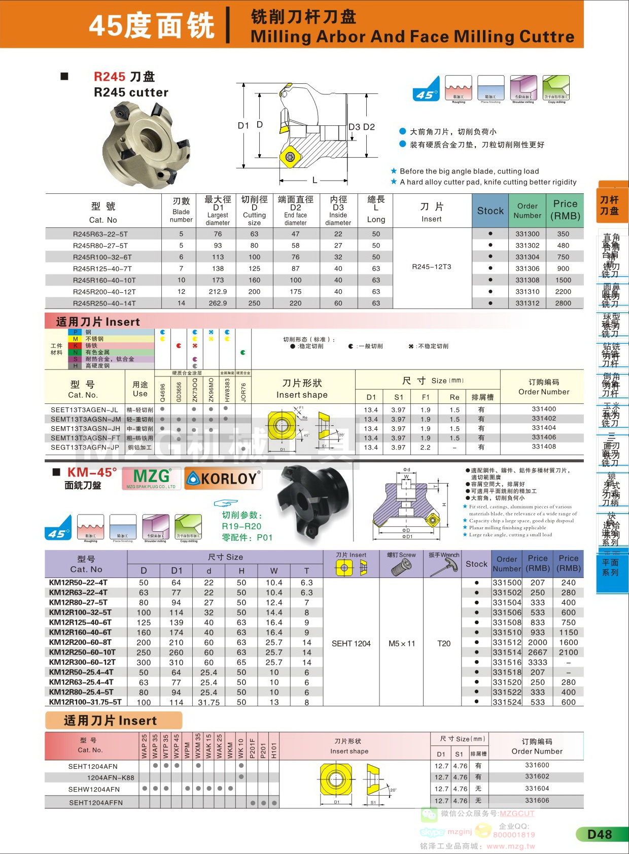 MZG品牌平面銑削刀盤產(chǎn)品技術(shù)參數(shù)配件組成信息