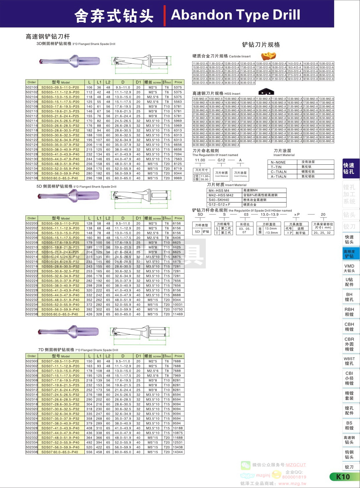 MZG品牌快速鉆孔系統(tǒng)產(chǎn)品技術(shù)參數(shù)配件組成信息